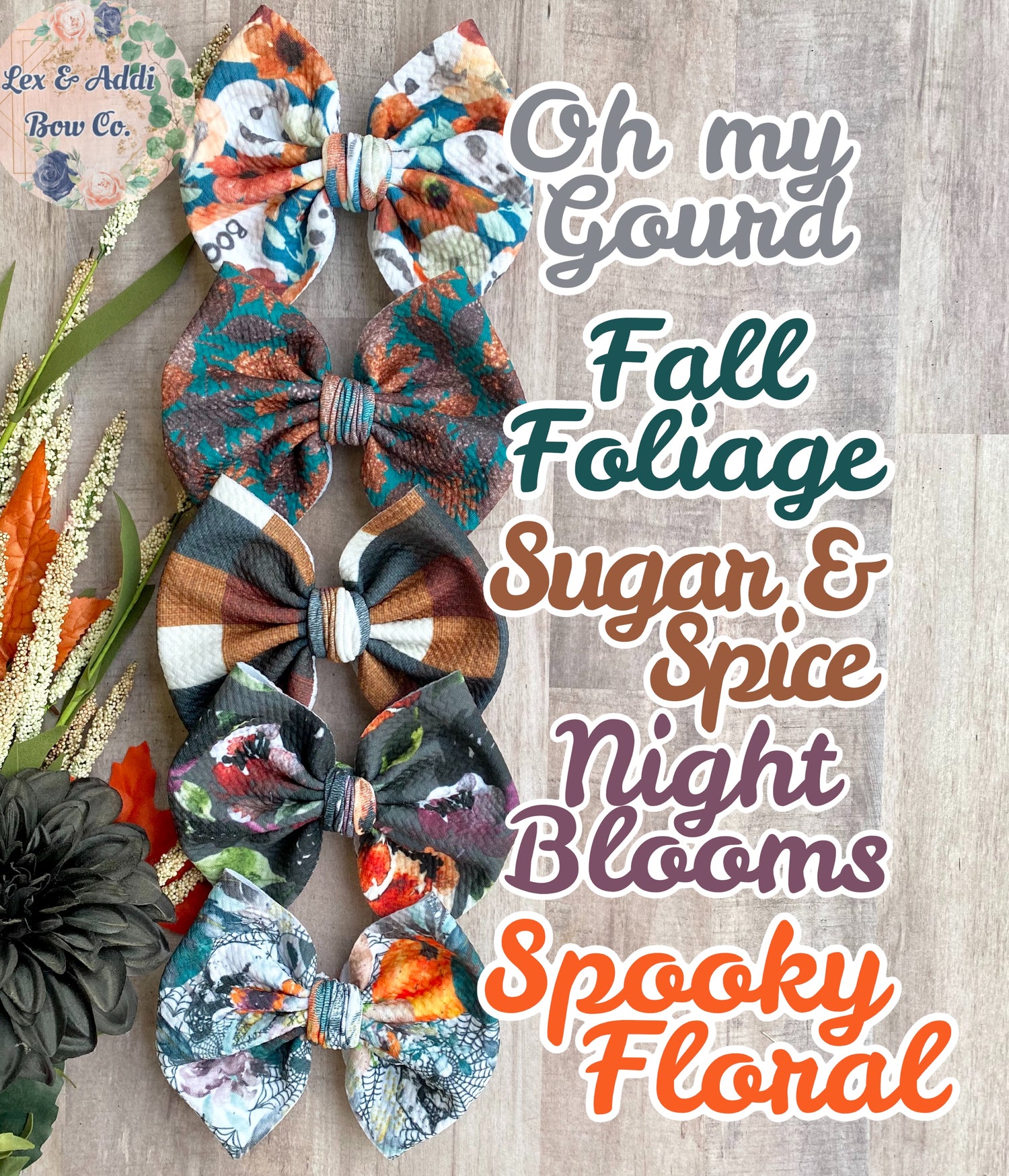 Our full collection of beautiful hand-made Wraps, Bows & Scrunchies.